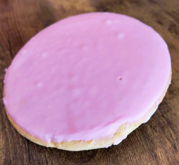 Soft, buttery sugar cookie topped with a thick swirl of sweet pink frosting and a sprinkle of fun. Sweet, chewy, and delightfully nostalgic—it’s like a party in cookie form.